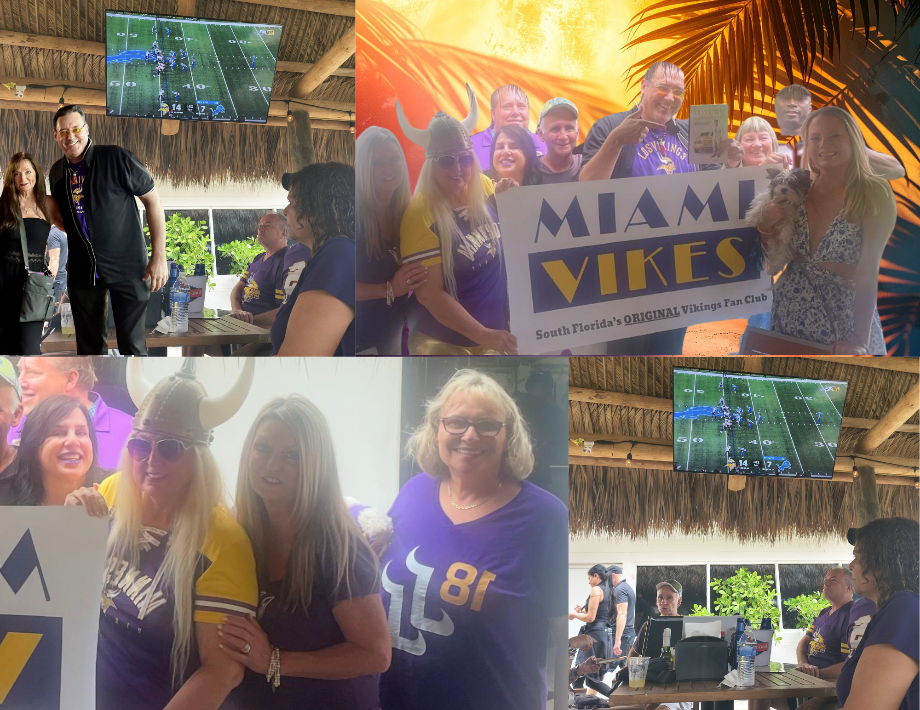 The MIAMI VIKES are South Florida’s original Minnesota Vikings fan club, founded in 2009 at the Ocean Manor Beach Resort in Fort Lauderdale. We gather at The Vikings Hut, a beachfront viewing area with big screens, great food, and a welcoming community. Whether you’re local or visiting, join us to experience Vikings football in a true South Florida paradise.